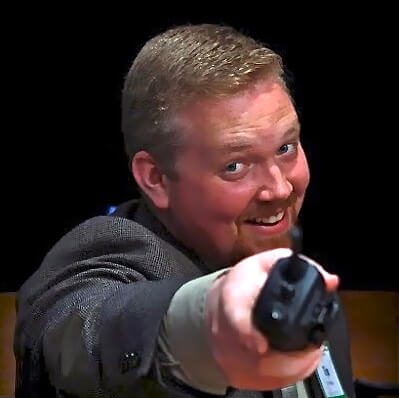 Timothy Watkins Linda Watkins August 23, 2017 Young man pointing a walkie at the camera, smiling, and saying “We need you to volunteer!”